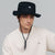 Fisher hat negro con silueta clásica, cordones ajustables con tanca y el logo estampado adelante en el centro.