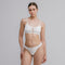 Top crema hecho en licra y mesh. Tiene el logo estampado adelante en alto relieve. La pretina es elástica.