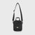 Bolso crossbody negro hecho en lona con el logo metálico en el frente y dos cargaderas. Viene con cierre y haladores tono a tono.