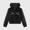 Chaqueta negra hecha con un material suave al tacto. Su silueta es slim. Tiene bolsillos tipo canguro, sesgo blanco en las mangas y bordados de la colección adelante. Se puede usar como set con nuestros Velour Track Pants