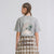 Camiseta gris hecha en algodón con silueta regular. Viene con el cuello en rib y diseños de la colección estampdos adelante y atrás.