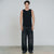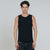 Camiseta manga sisa negra hecha en tela con textura. Viene con el cuello y los bordes en rib, y el logo bordado adelante a un lado. Su silueta es de fit regular.