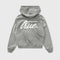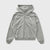 Hoodie de cierre gris hecho en algodón con capucha ajustable. Viene con bolsillos tipo canguro adelante, puños y fajón en rib. Viene con un estampado plano adelante y un estampado elevado atrás.