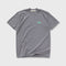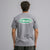 Camiseta gris en algodón con silueta regular. Viene con estampados adelante y atrás, en alta densidad. Tiene el cuello en rib.