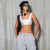 Top blanco hecho en poliéster con resorte inferior y el logo estampado adelante. Su silueta es clásica.