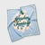 Bandana azul sublimada con un diseño de la colección en tonos azul claro, crema y verde pino.