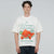 Camiseta crema con silueta boxy, hecha en algodón. Viene con el cuello en rib y un estampado adelante combinado plano y en alta densidad.