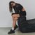 Falda negra hecha en mesh. Tiene una correa a un lado para ajustar la altura.
