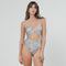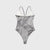 Body gris con un diseño de pitón sublimado en toda la prenda. Tiene forro interno y una abertura en el pecho. Viene con el logo estampado adelante.