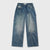 Pantalones hechos en denim azul con bolsillos frontales tradicionales, jareta a un lado y bolsillos posteriores. Vienen con efecto desteñido. Silueta mid-rise y bota ancha.