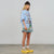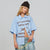 Camisa manga corta, de cuadros azules con blanco con un diseño de la colección estampado en alta densidad, adelante.